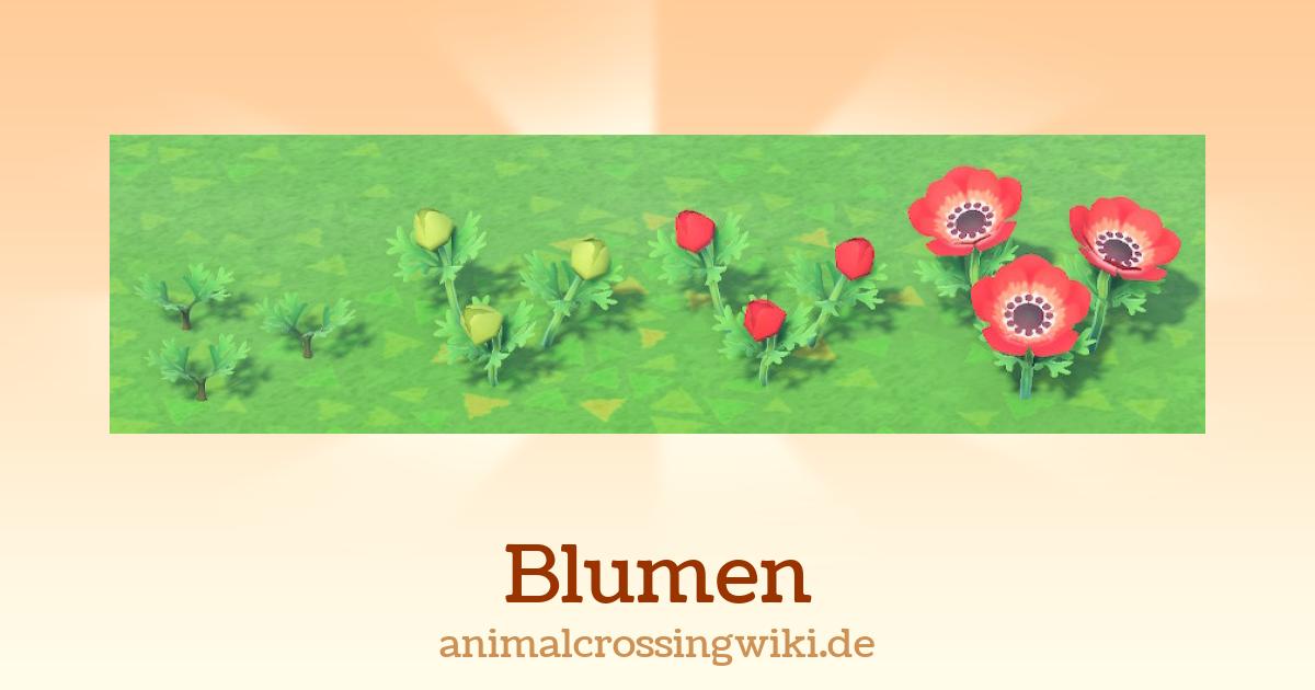 Täglich wachsen in deiner Stadt einige zufällige Blumen du kannst Blumensamen in der Gärtnerei kaufen und Blumenfelder animieren deine Nachbarn dazu selber Blumen daneben zu pflanzen. New Horizons Alle Blumenarten Es gibt insgesamt acht Blumenarten im Spiel. Blumen kannst du in Animal Crossing.