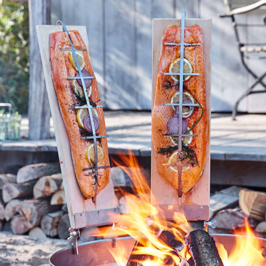 Brett lachs grillen. Der Neigungswinkel kann mit den Feststellschrauben stufenlos verstellt werden. Wässern Sie ein etwa zwei Zentimeter dickes Brett aus Zedernholz eine Stunde lang in Salzwasser. Das Holzbrett verleiht dem Lachsfilet ein tolles Raucharoma das durch die Hitze langsam freigesetzt wird.